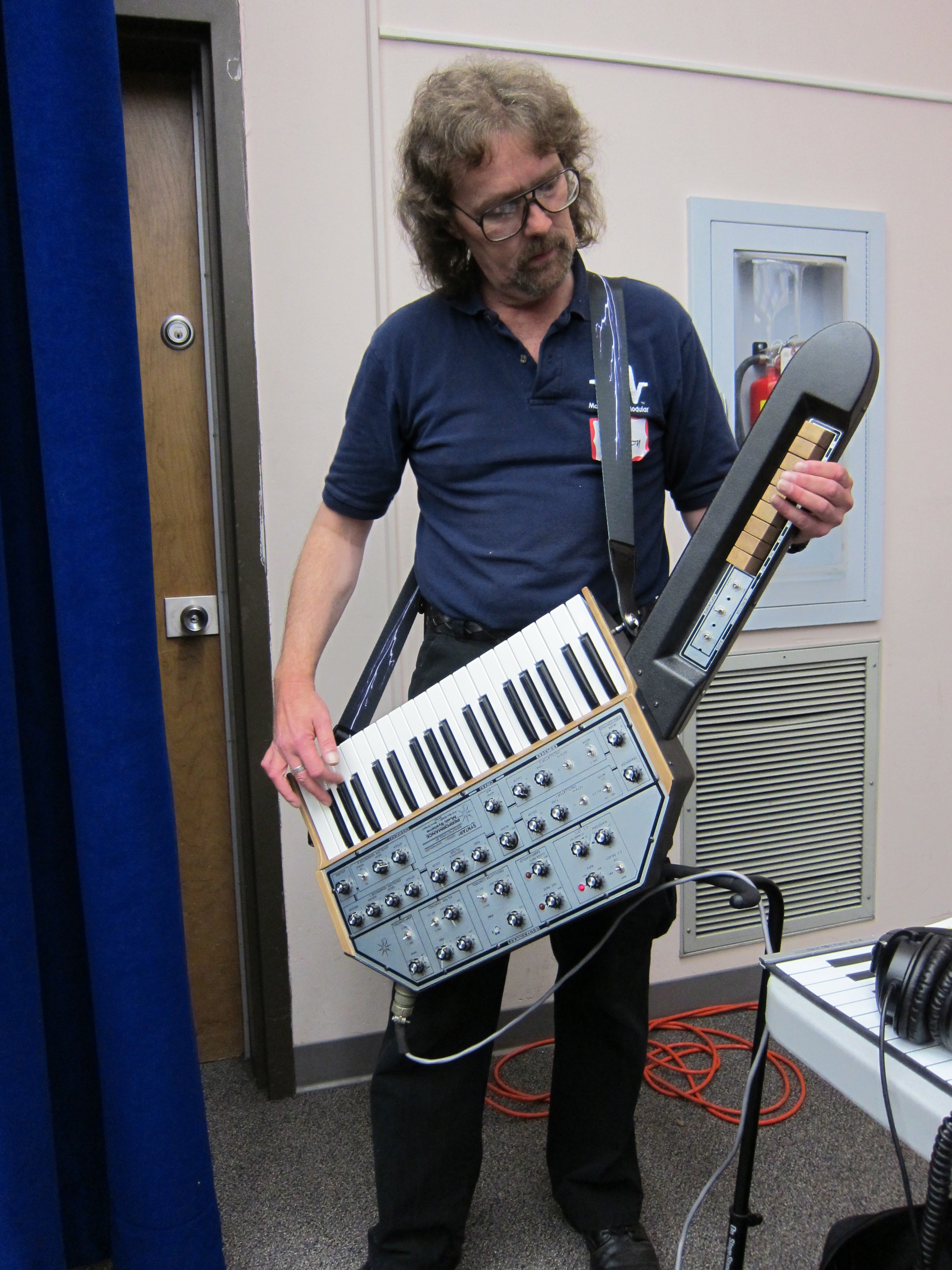 I looked real hard through every interview I could for some sort of smoking gun in regard to the keytar’s form serving a true aural function. Something about already playing one-handed on monotonic early synths making the form factor natural. Something about the position being better for emoting the tremolo-type sound with the pitch bend wheel. Something about the need for portability, for convenience, or for even choreographed dance moves. Nothing. There is no smoking gun.